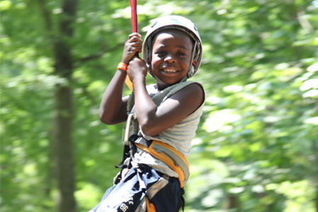 Campers choose from Mini and Intermediate Ziplines plus they can explore the Climbing Wall, Giants Ladder, Multi-vine Traverse, and Flying Squirrel!