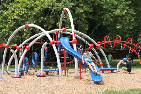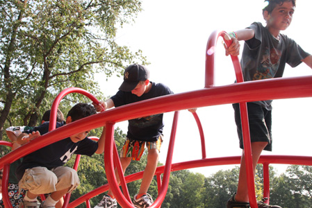This state of the art play structure is not for beginners. Older campers will be challenged by the creative climbing apparatus!