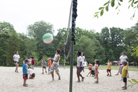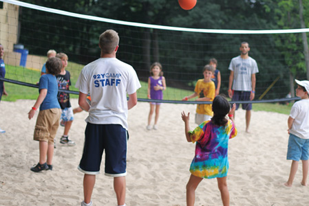 Older campers can play volleyball while younger campers can try Newcomb on our Sand Volley Court!