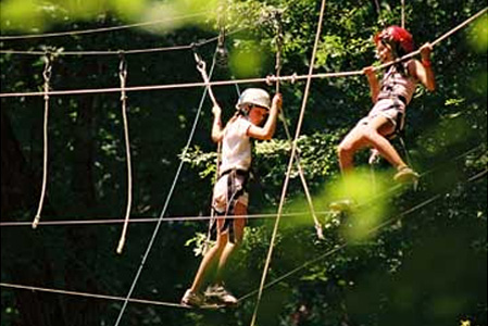 Campers choose from Mini and Intermediate Ziplines plus they can explore the Climbing Wall, Giants Ladder, Multi-vine Traverse, and Flying Squirrel!