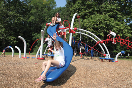 This state of the art play structure is not for beginners. Older campers will be challenged by the creative climbing apparatus!
