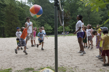 Older campers can play volleyball while younger campers can try Newcomb on our Sand Volley Court!